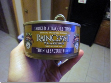 That’s some pretty great stuff, eh? I know I was impressed. The second I opened the cans I knew that the fish was going to be great. The aroma was fresh, and as the info states, the tuna/salmon was in one piece in the can, not flaked or chunked. I received the smoked Albacore tuna, the solid white albacore tuna and the wild skinless boneless pink salmon.